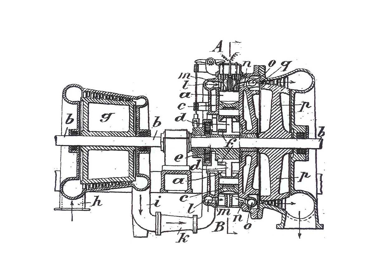 Во далечните 1885 и 1896 година „Gottlieb Daimler“ и „Rudolf Diesel“ ја истражуваа можноста за зголемување на снагата на моторот и за редукција на потрошувачката на гориво со употреба на компресиран воздух при согорувањето во моторот. Во 1925 година, швајцарскиот инжинер Алфред Бухи беше првиот којшто успешно го примени системот за турбо - компресирање со помош на издувни гасови и постигна зголемување на снагата на моторот за повеќе од 40%. Oва претставува почеток на ерата на воведување на турбо - компресорите во автомобилската индустрија. Првите турбо - компресори се користеле кај многу големите мотори. Во автомобилската индустрија најпрво почнале да се употребуваат кај моторите на камионите. Во 1938 година „Swiss Machine Works Saurer“ го изработи првиот камионски мотор со турбо - компресор. |